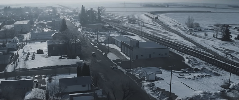 Our Java Post Aerial Photography crew - certified advanced RPAS pilot "Java Jack" Tunnicliffe and camera assistant/gimbal operator Kristine Dowler - spent a few wintery days this part March in and around the town of Carberry, Manitoba, shooting aerials for the film.